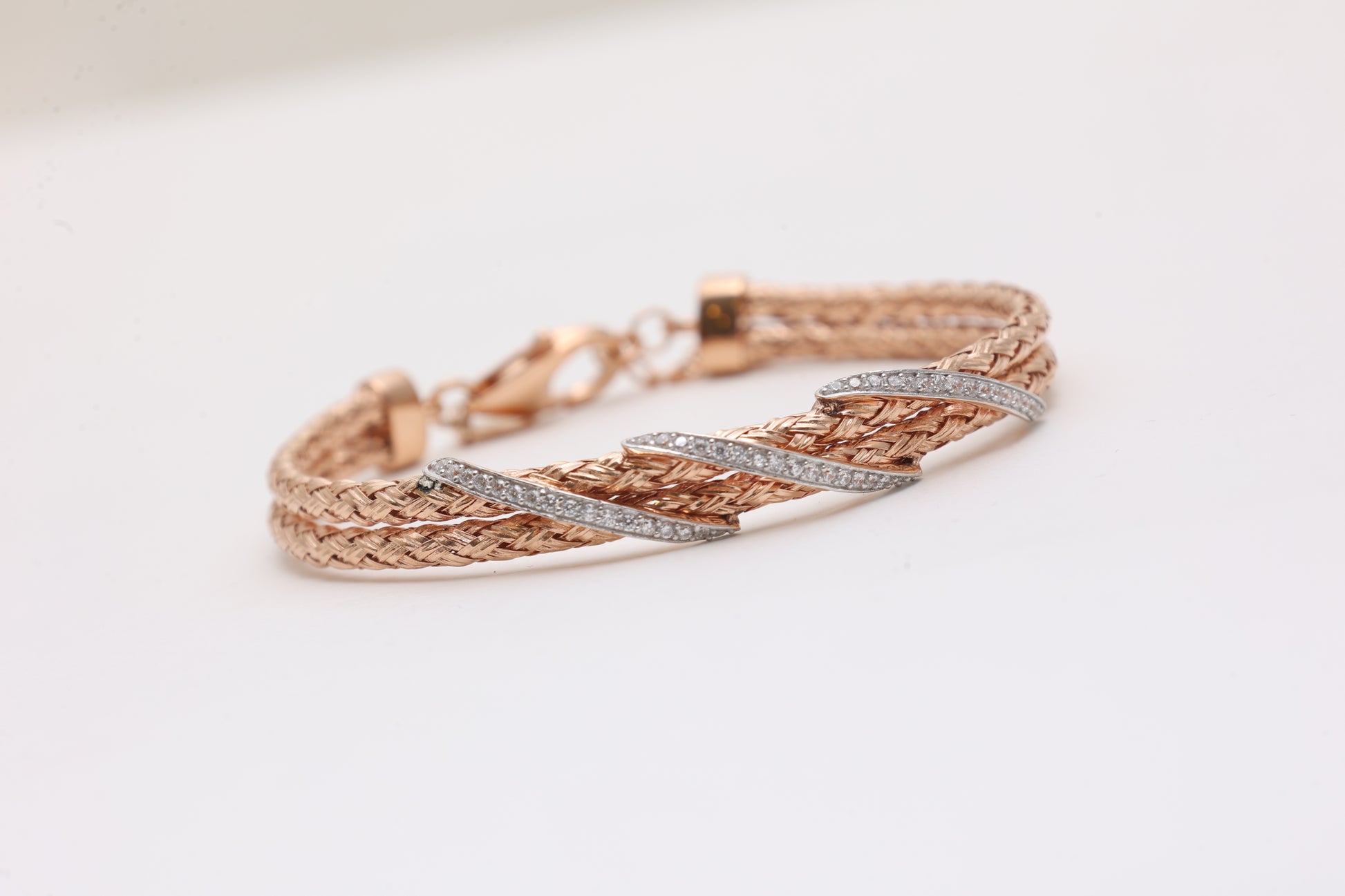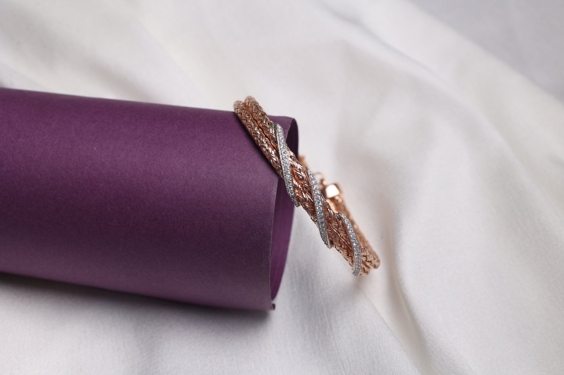 A bold, textured bracelet featuring intricately braided links with shimmering CZ swirls a striking balance of strength and elegance.