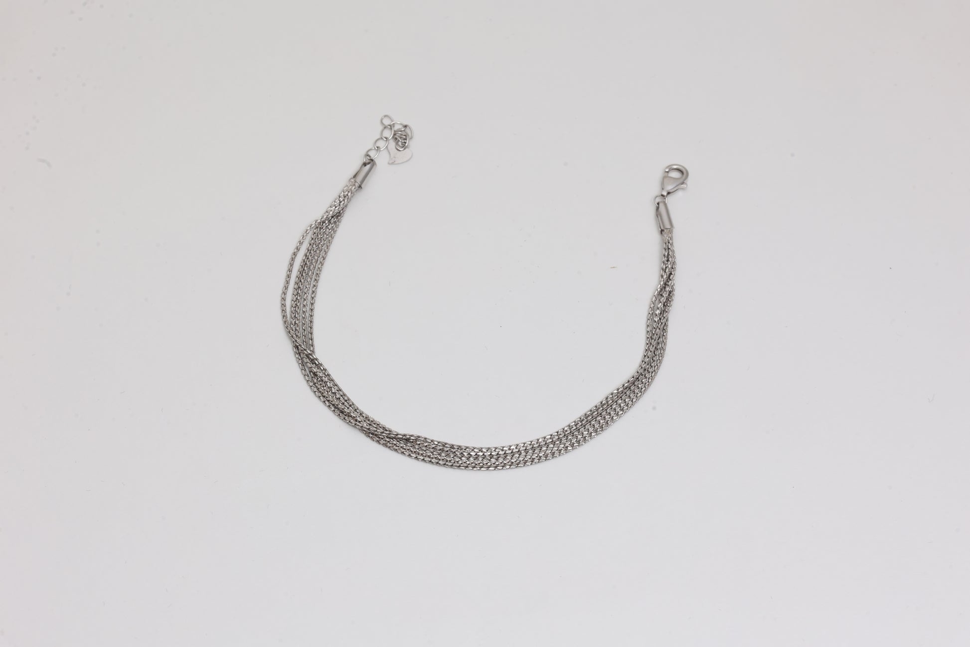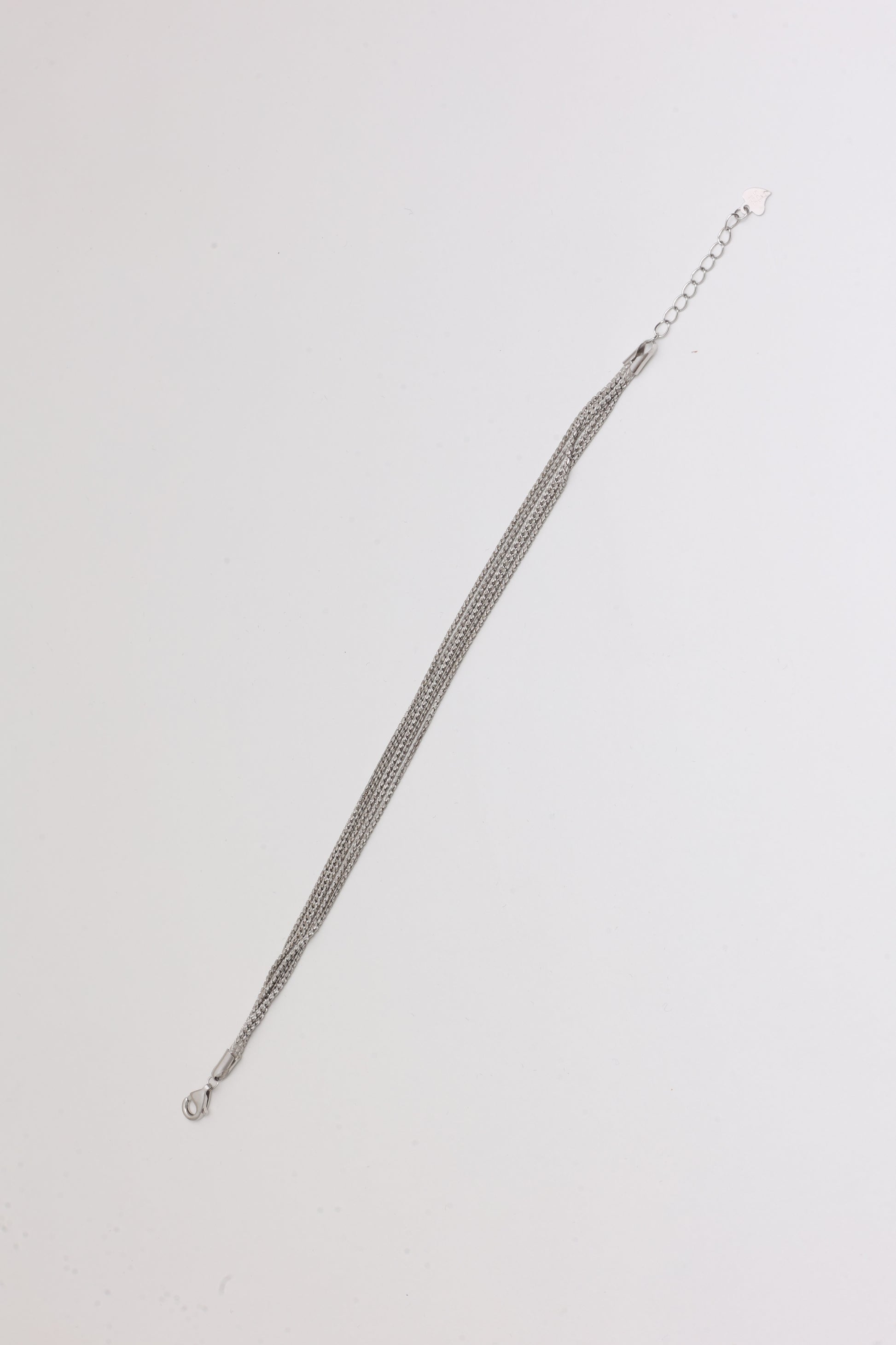 Elevate your wristwear with the bold elegance of this multi-strand mesh bracelet. The finely woven chains flow seamlessly, creating a fluid texture that feels both modern and timeless. A versatile design that transitions effortlessly from daywear to evening sophistication.