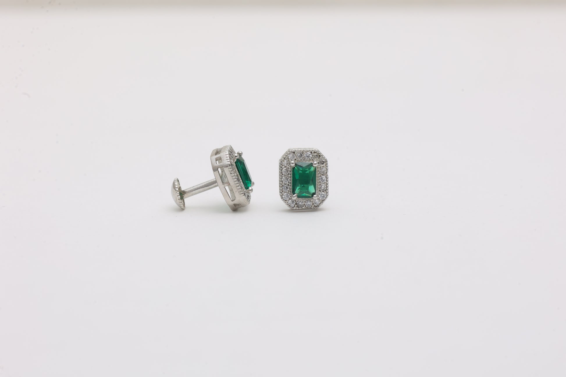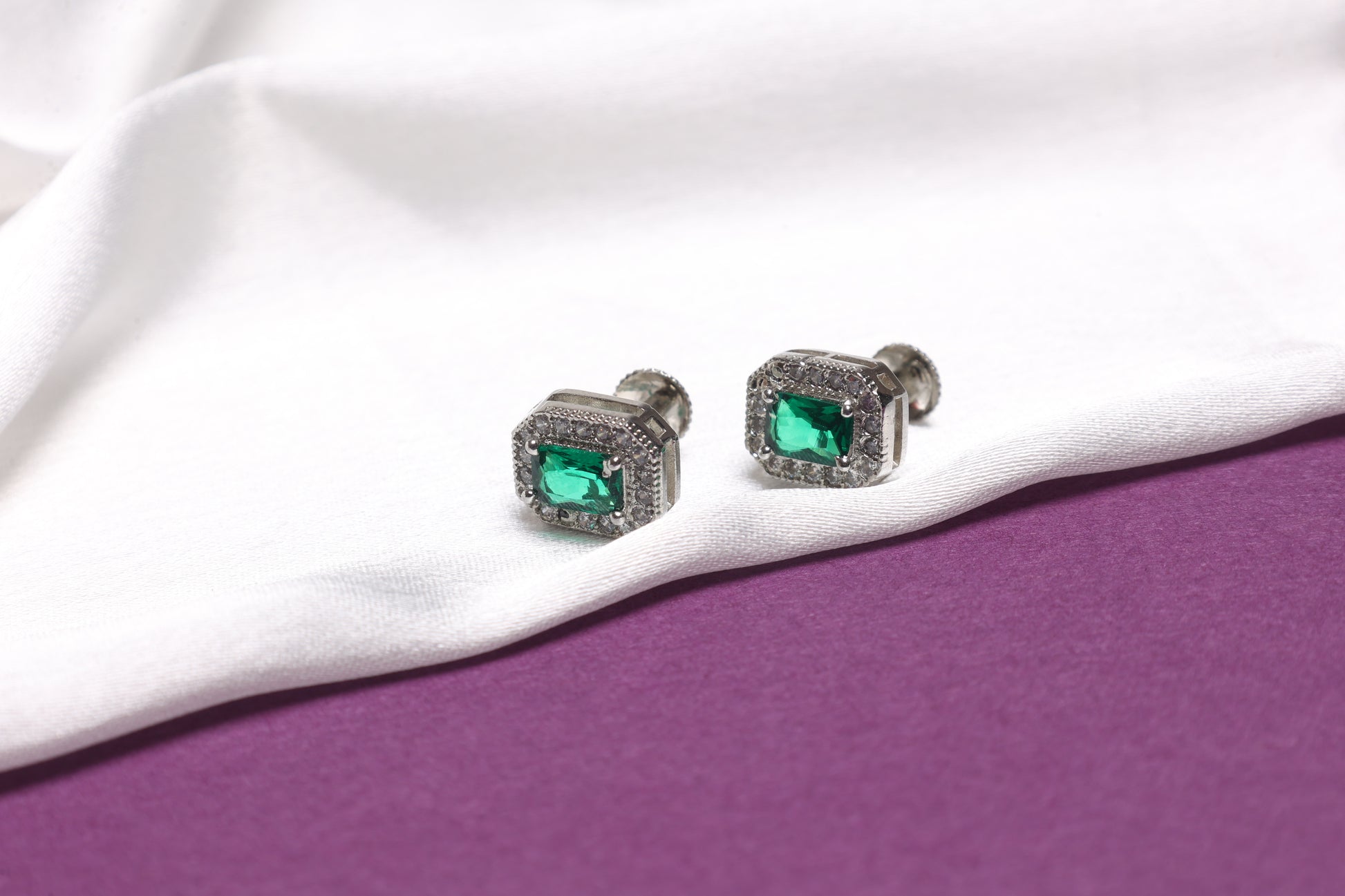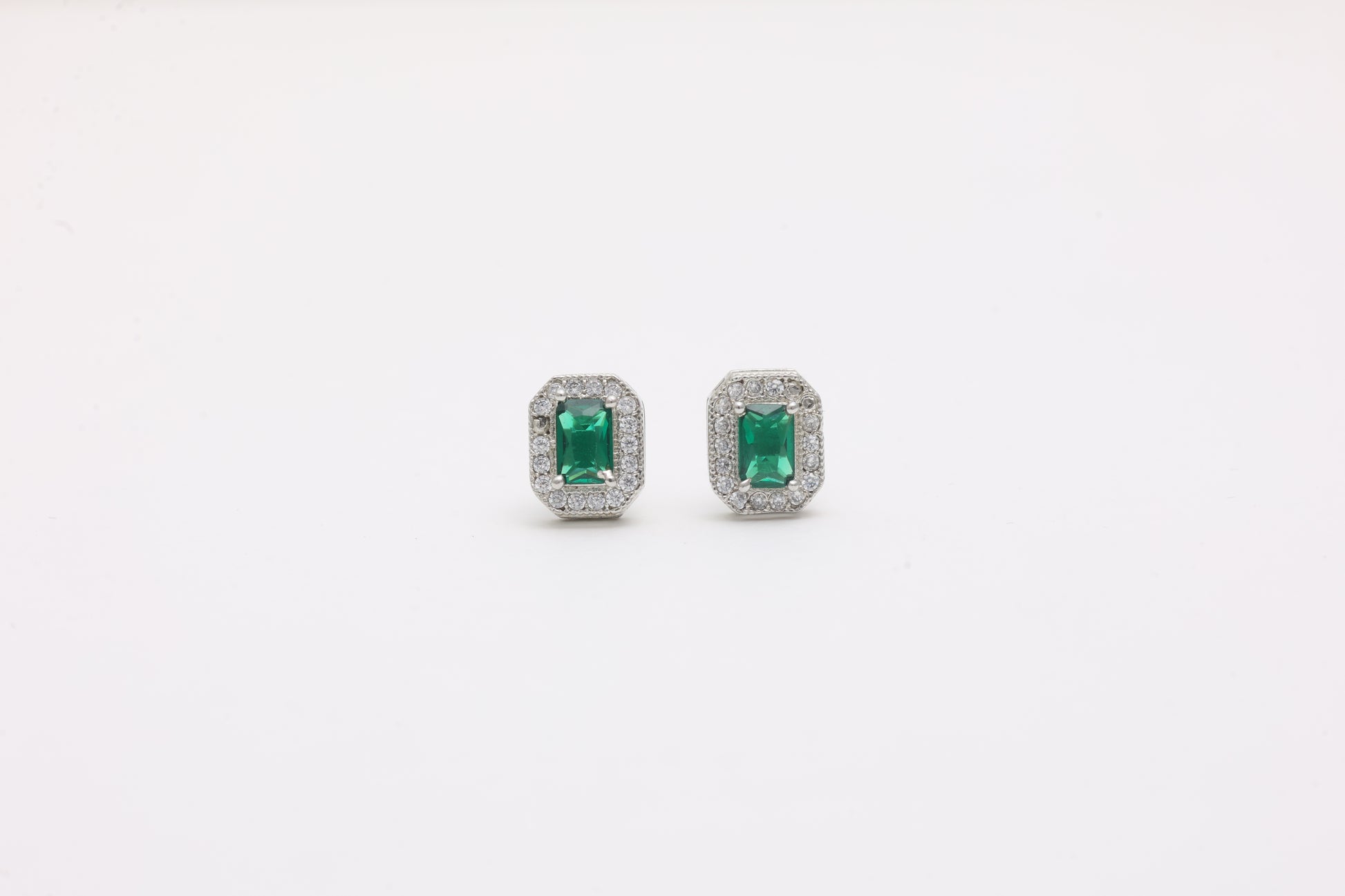 Striking emerald-cut green gemstones are framed with shimmering CZ stones, creating a bold statement piece for any occasion.