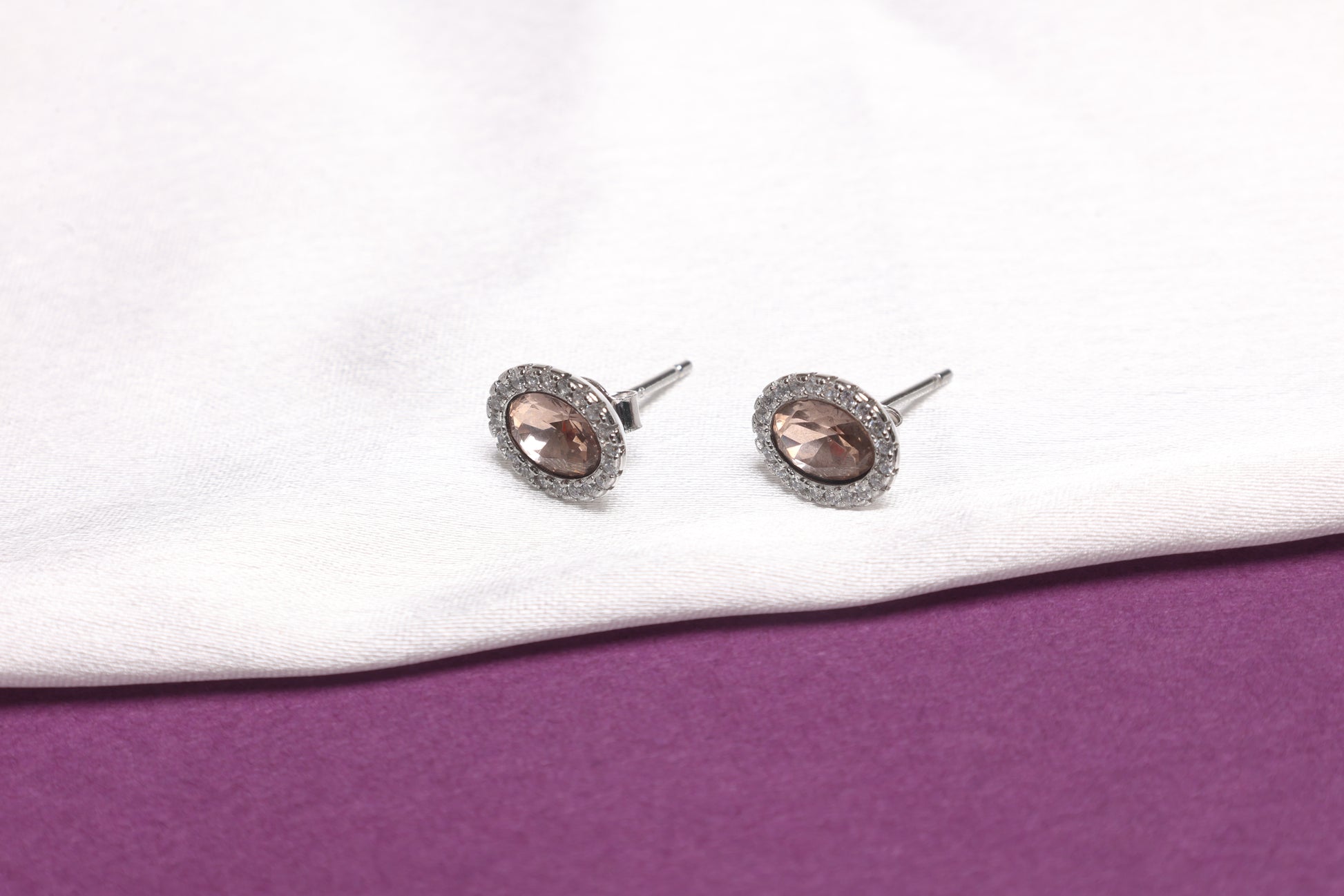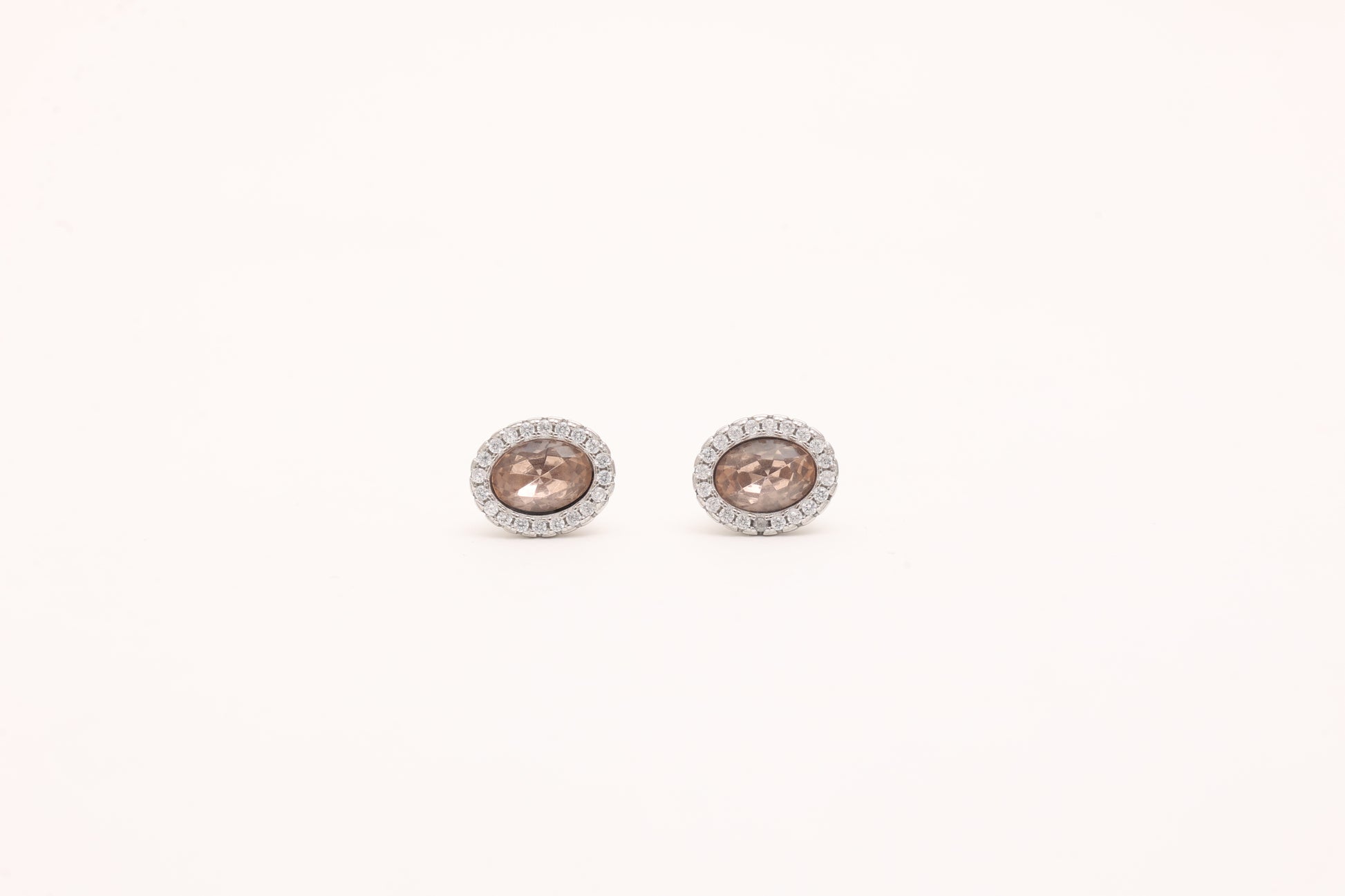 Smoky quartz elegance meets modern charm in these oval halo studs, delicately framed with sparkling cubic zirconia for a refined finish. A versatile pair that transitions seamlessly from everyday wear to evening glamour.