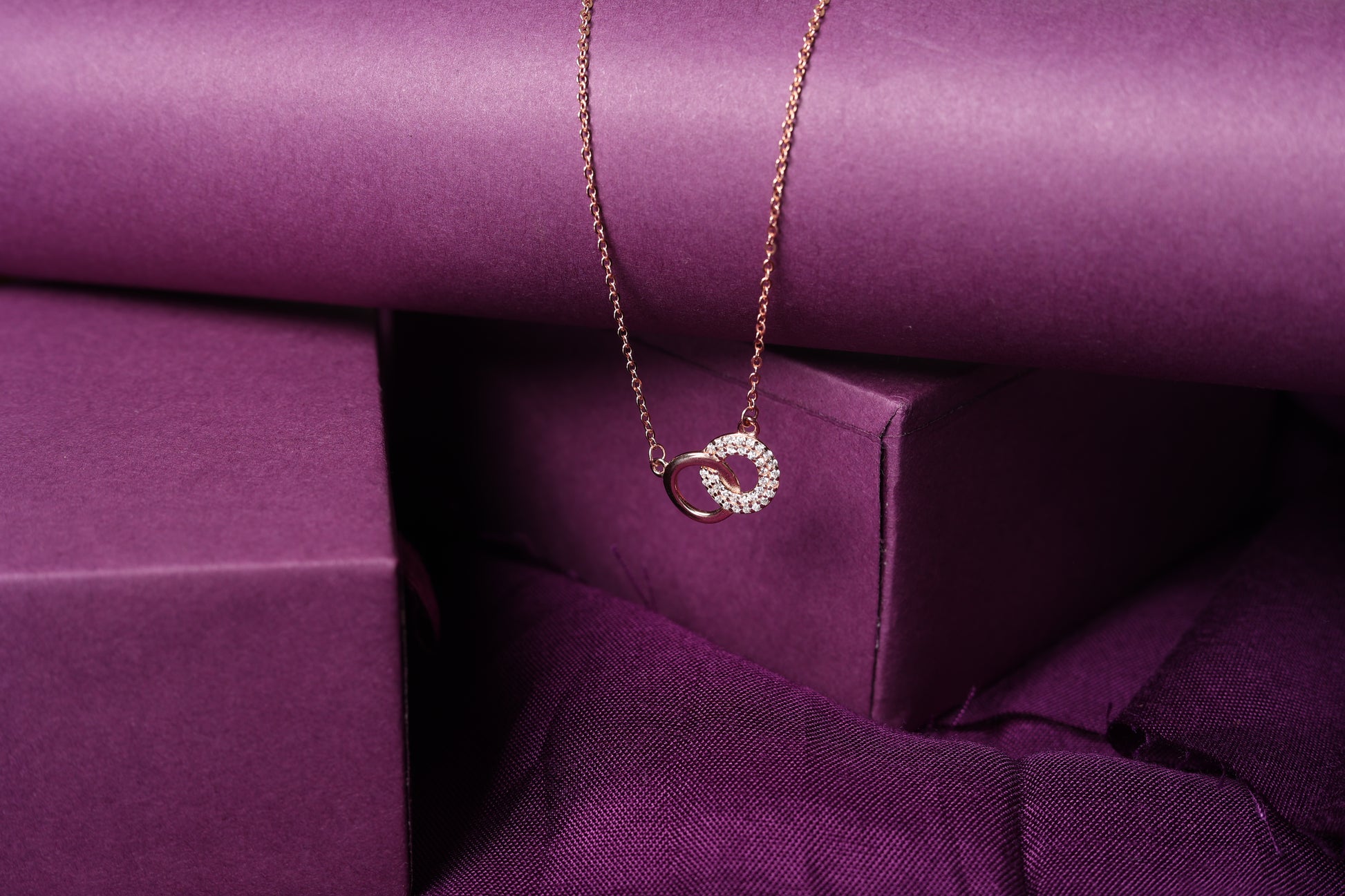 Celebrate eternal bonds with this interlocked circle necklace, where one polished ring embraces another embellished with cubic zirconia sparkle.