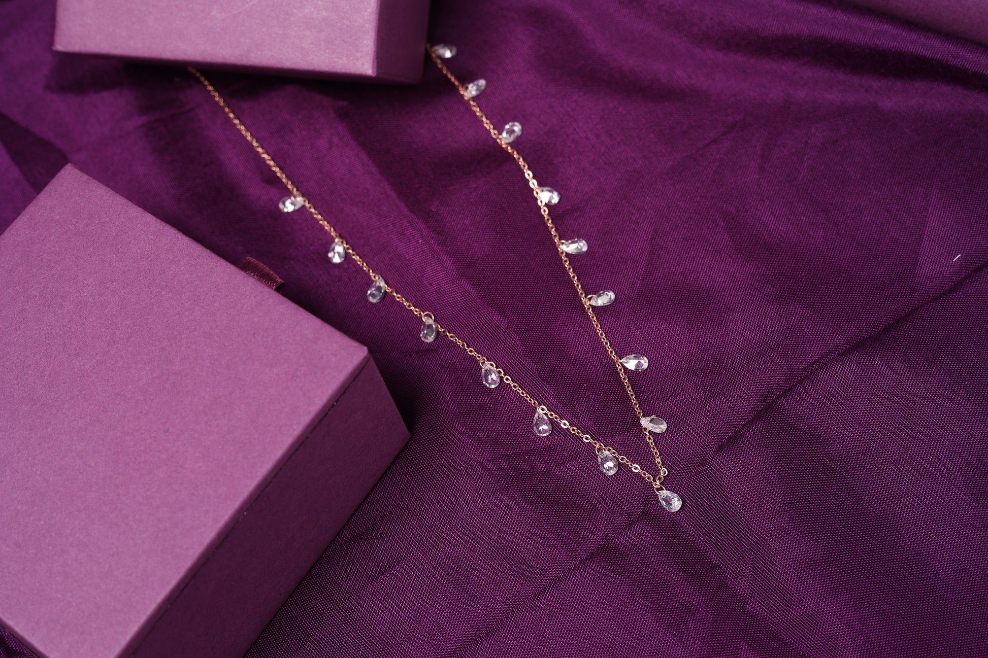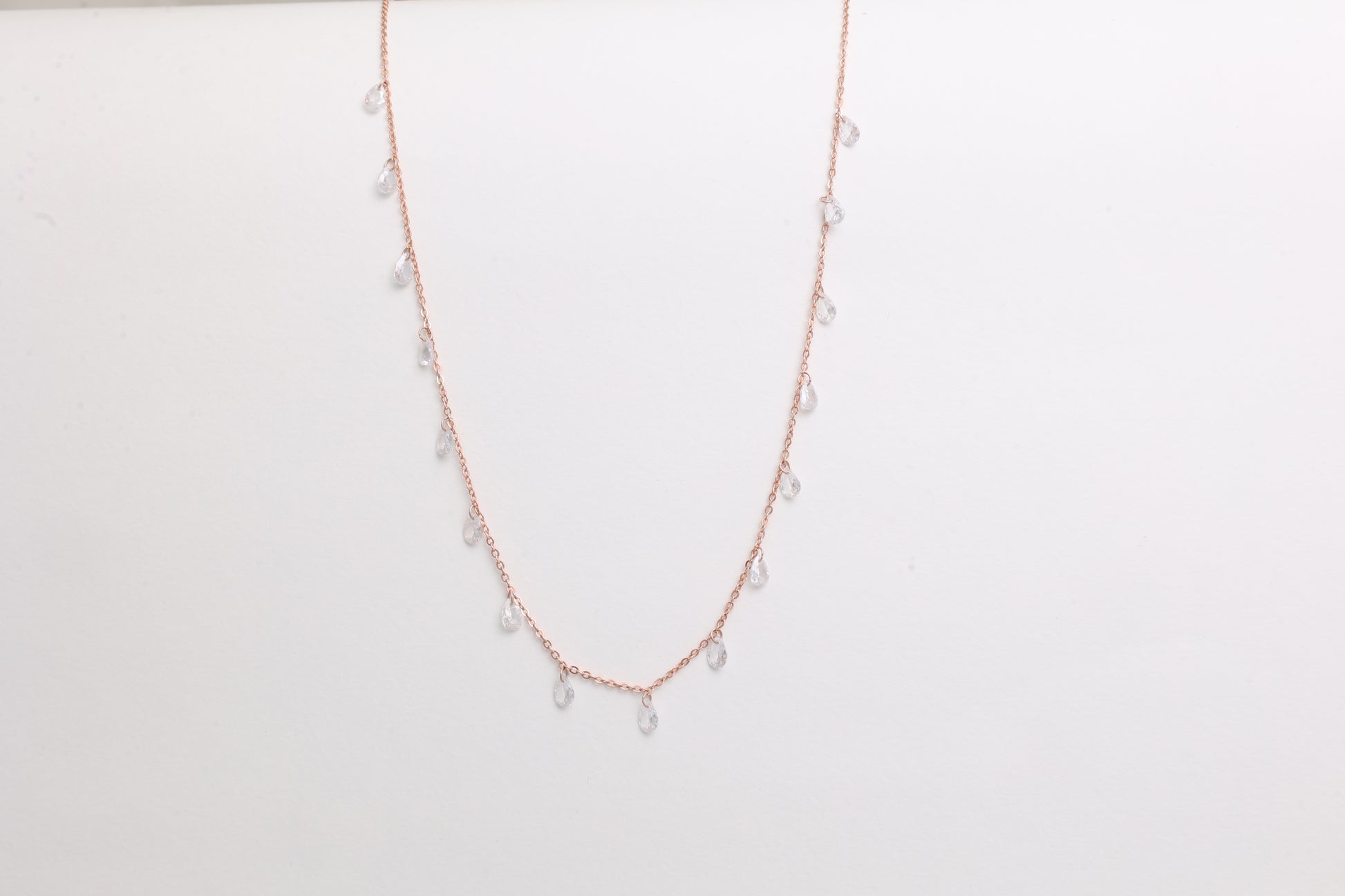 Delicate teardrop charms glisten across this fine chain, creating a look that's both playful and elegant. A versatile piece that adds subtle sparkle to any outfit.