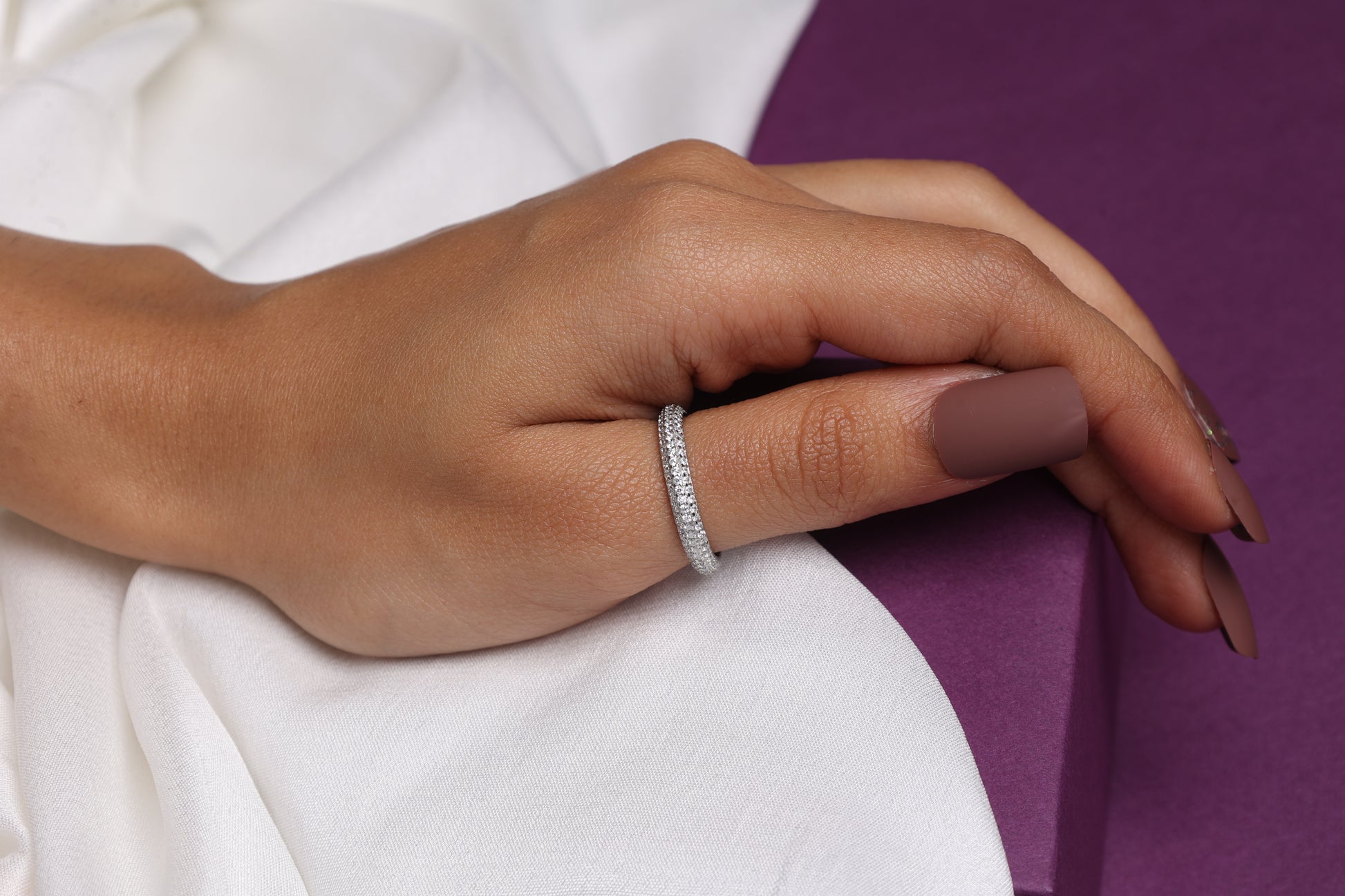 - Delicate slim band with subtle starlight pavé for understated brilliance